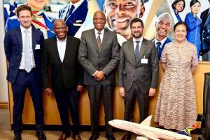 El Embajador argentino ante Sudáfrica, Raúl Ailán, y representantes de la Sección Comercial mantuvieron una reunión de trabajo con el Sr. J. Lamola, CEO de South African Airways (SAA), quien estuvo acompañado por Tebogo Tsimane (Chief Commercial Officer) y Elliot Themba (responsable de relaciones gubernamentales).